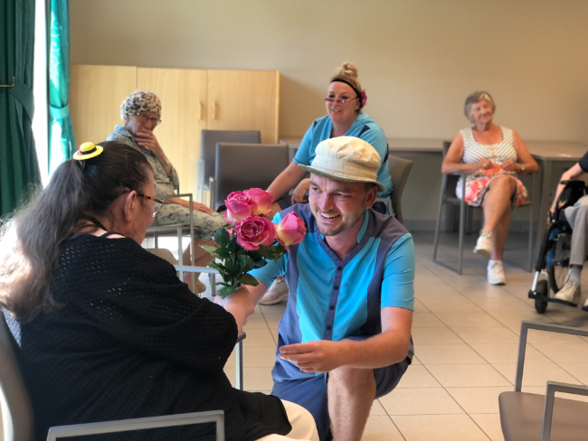 Door deel te nemen aan Maak een scène krijgt jouw woonzorgcentrum de kans om samen met bewoners en zorgmedewerkers nieuwe vormen van spel en creativiteit te ontdekken. Je opent de deuren voor artiesten, maar ook voor je eigen team, om de zorgomgeving te zien als een creatieve ruimte vol mogelijkheden.